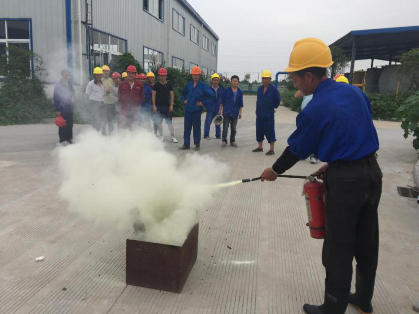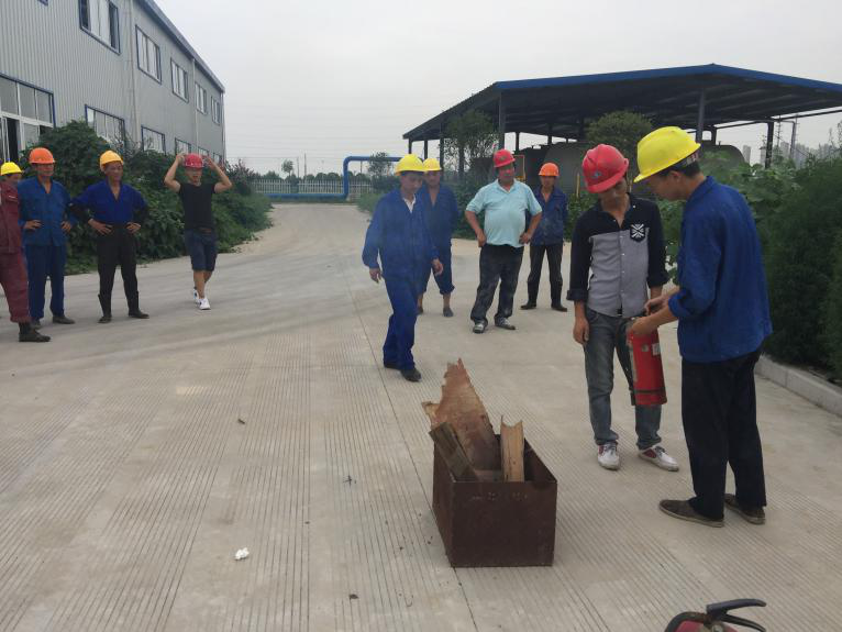 隨后,進行了以消防為主的安全應急演練。由車間主任詳細教授了滅火器和消防栓的正確使用方法和注意事項,并由員工逐一上前練習使用,不規范的地方當即指出并現場糾正,確保每一名員工會用。所有員工同時學習了火場的正確逃生方法和事故的正確上報流程,發生事故第一時間上報當班班長,班長立刻通知車間主任,車間主任上報到安環部負責人,安環部負責人上報給廠長,廠長接報后立即向總經理報告,并報警,同時啟動安全生產應急預案,逐級上報,做到臨危不亂,有序處理。經過此次演練,員工的安全生產意識得到了進一步強化,針對演練中暴露出的問題和不足,將由安環部牽頭在以后的工作中予以督促和改正,切實落實企業的安全主人翁意識。