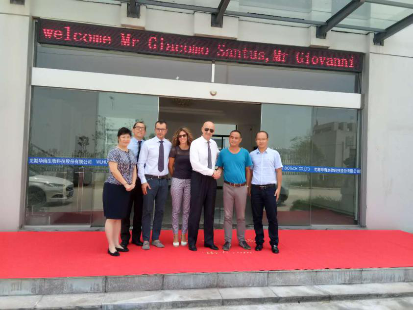 一貫以來,我公司以優質的產品和服務,雄厚的公司資質和信譽,良好的行業發展前景與國內外客戶保持長期而穩定的合作。在此基礎上,雙方均有意向擴大合作領域。此次,意大利公司派出以CEO Giacomo Santus為首的考察團隊蒞臨現場進行實地考察。在公司各部門主要負責人的陪同下,客戶參觀考察了公司生產車間、包裝車間、研發中心、倉儲設備,陪同人員詳細的介紹了我公司主要設備的生產加工過程及設備的使用范圍、使用效果等相關知識。